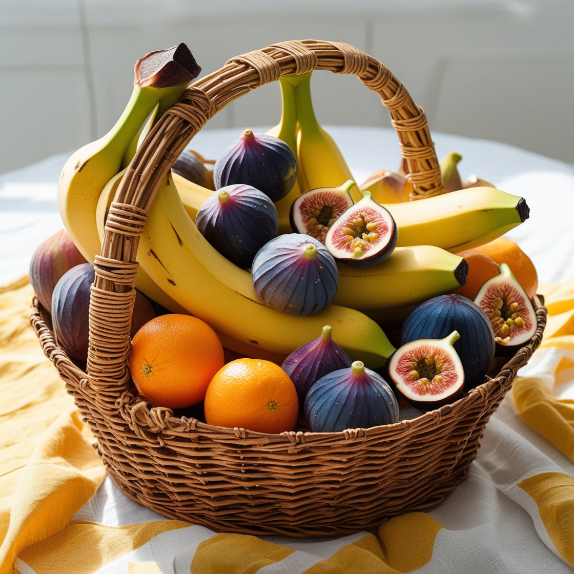 As a product expert, I present Sunspire Medley, a radiant collection of golden bananas, fresh figs, passion fruits, and clementines. This basket of sun-drenched sweetness and hint of tropical adventure is packed with essential vitamins and minerals to boost your health. Each 2.6 kg basket contains a perfect blend of vibrant flavors and nutrients.